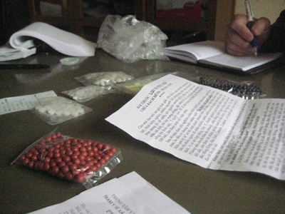 Trở lại với gói thuốc mang tên “Lục vị thần tiên”, chúng tôi có nghe thông tin bài thuốc xuất xứ tại huyện Kim Thành, Hải Dương của BS. Cao Xuân Lung, nguyên là cán bộ lãnh đạo của BV Nông nghiệp 1. Điều rất ngạc nhiên là tại đây cũng tái diễn tình trạng bán thuốc không nhãn mác, không rõ xuất xứ. Trong vai người bệnh, chúng tôi được một phụ nữ thăm khám và sau khi chi 75.000 đồng tiền mua thuốc, chúng tôi không chỉ có “Lục vị thần tiên” mà là “Thất vị thần tiên”, có đến 7 loại thuốc khác nhau thay vì 6 vị như gói thuốc “Lục vị thần tiên” mà tôi đã có trong tay, trong đó cũng có cả thuốc tây lẫn thuốc đông y hoàn viên và tất nhiên là tất cả đều không có dòng chữ nào ghi thành phần thuốc.