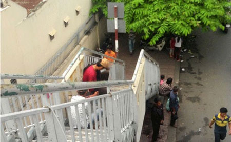 Các con nghiện công khai chích ma túy trên cầu bộ hành Bệnh viện Ung Bướu. |