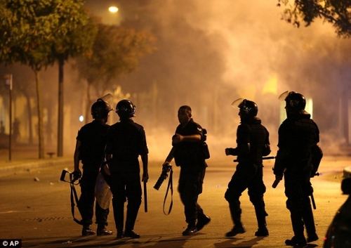 Tiếng súng có thể được nghe thấy trong khu thương mại của thủ đô vào ban đêm trong khi cảnh sát bắn chỉ thiên để giải tán những người biểu tình sau khi sử dụng các khẩu súng hơi và đạn cay giải tán đám đông.