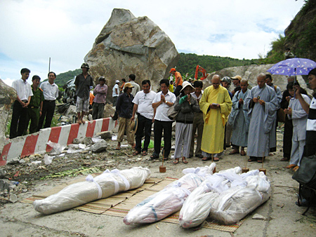 ![]() Tẩm liệm và tổ chức nghi lễ cổ truyền cho các nạn nhân ngay tại hiện trường trước khi đưa về quê an táng. |