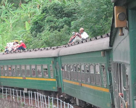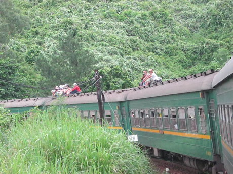 Qua tìm hiểm, phóng viên được biết, đây là những người bán hàng rong ở Đà Nẵng và Huế, vì để tránh bị kiểm soát vé nên họ đành “mượn tạm” nóc tàu để “an tọa”.