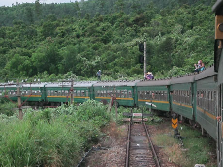 Đó là những hình ảnh thường bắt gặp trên hành trình của chuyến tàu TN2 (thuộc đường sắt Việt Nam) đoạn qua hầm Hải Vân (từ ga Đà Nẵng tới ga Huế).