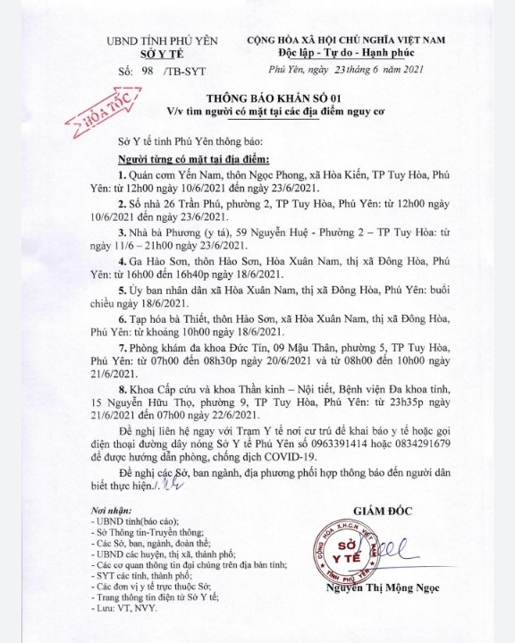 Được biết, trước khi BN 13960 vào Khánh Hòa và được tỉnh Khánh Hòa phát hiện dương tính với COVID-19 thì đã có lịch trình dày đặc ở Phú Yên. Hiện nay ngành y tế Phú Yên đang tích cực khoanh vùng, truy vết.