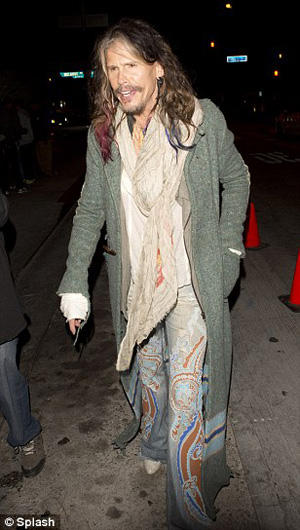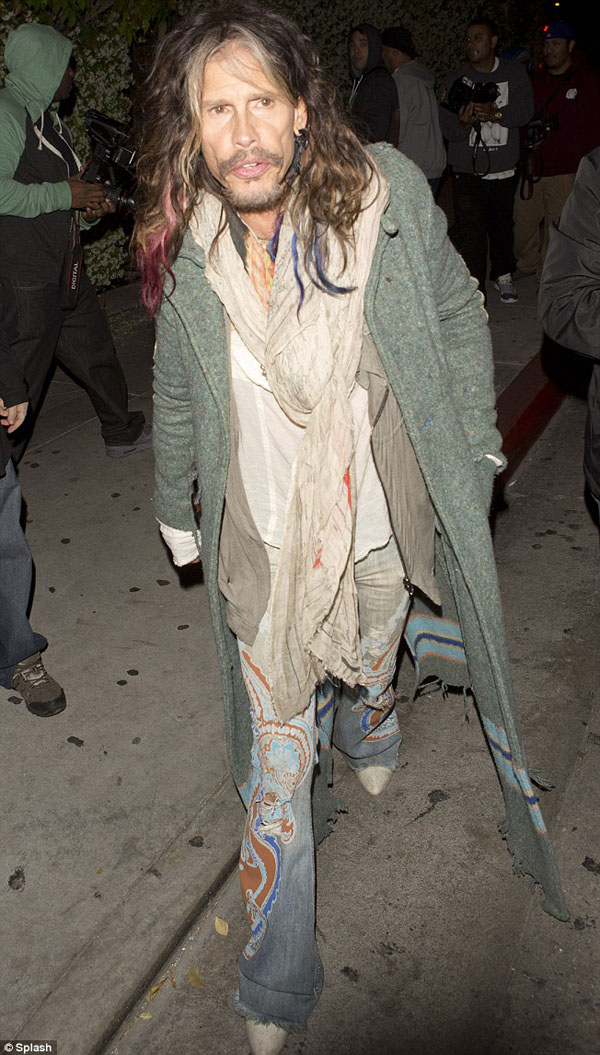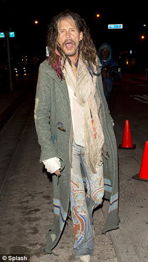 Khi mới bước xuống xe, Steven Tyler còn khiến cánh phóng viên há hốc miệng bởi mái tóc đủ các màu, rối bù xù, chiếc áo choàng và quần jeans đều được cắt tua ra. Hơn nữa, những chiếc áo và chiếc khăn quàng cổ đều là màu trắng nhưng đã bị ố, bẩn một cách đáng sợ. Điều đáng nói hơn cả là màu sắc những trang phục này dường như hàng năm chưa được giặt là, khiến người nhìn phải rùng rợn.
