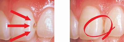 Lỗ sâu răng (trái) và sau khi điều trị hàn kín lỗ sâu (phải). |