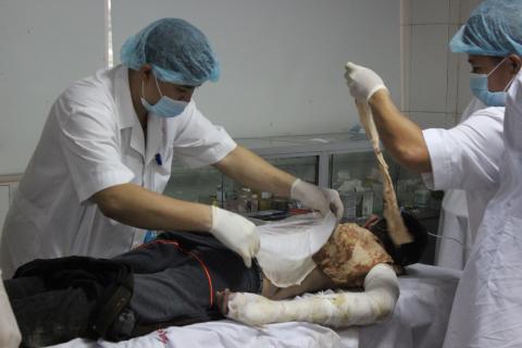 Sự cố nổ lò hơi vào sáng 18/4 tại Công ty cổ phần Thế giới gỗ Việt Nam, tại Khu công nghiệp Nam Cấm - Nghi Lộc - Nghệ An đã khiến 11 công nhân bị bỏng. Người bị nhẹ nhất là bỏng 8% cơ thể, người nặng nhất là gần 60%. Đến ngày 19/4, đã có 2 người được ra viện, 2 người phải chuyển lên tuyến trên tại Viện Bỏng Quốc gia và 5 người còn lại đang được điều trị tích cực tại Bệnh viện (BV) Hữu nghị đa khoa Nghệ An và BV 115...