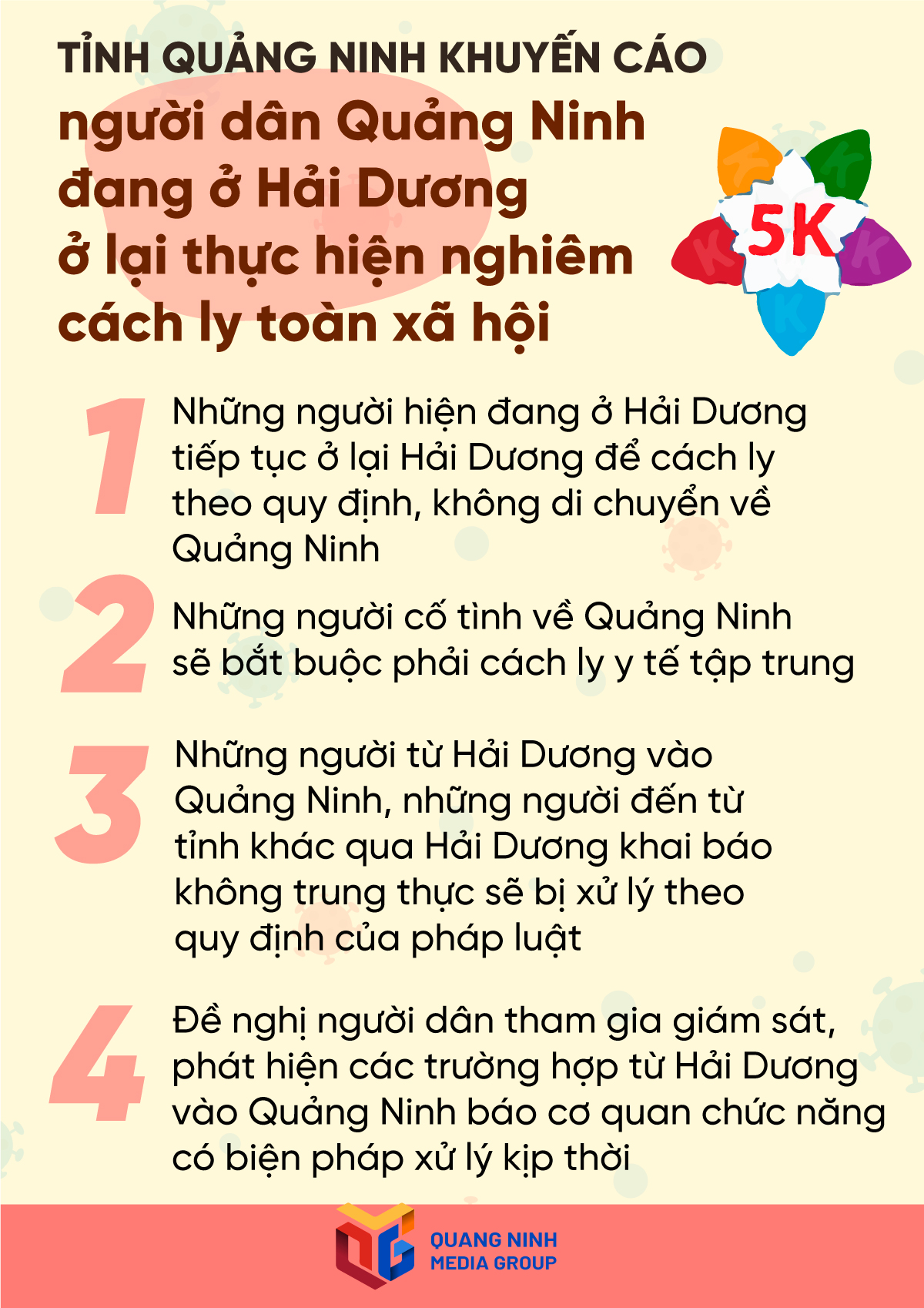 * Tỉnh Quảng Ninh cũng ra khuyến cáo: Người dân Quảng Ninh đang ở Hải Dương ở lại thực hiện nghiêm cách ly toàn xã hội.