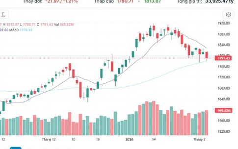 Thị trường - 04/02/2026 15:22SKĐS - Thị trường Chứng khoán Việt Nam (VN-Index) phiên 4/2 'bốc hơi' gần 22 điểm, qua đó mất mốc hỗ trợ quan trọng 1.800 điểm.