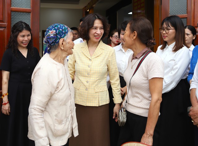 Thứ trưởng Bộ Y tế Nguyễn Thị Liên Hương thăm hỏi người dân tại khu vực xét nghiệm máu.