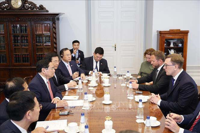 Thủ tướng Phạm Minh Chính hội đàm với Thủ tướng Cộng hòa Estonia Kristen Michal. Ảnh: Dương Giang/TTXVN