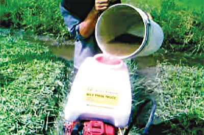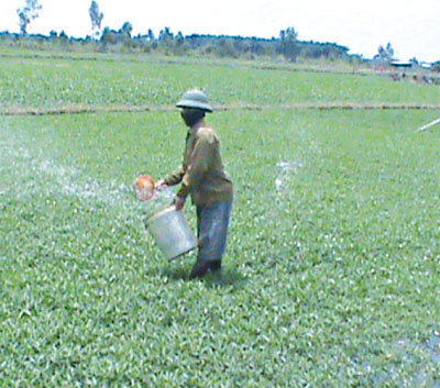 Để tăng tốc cho rau muống người trồng rau sử dụng viên thuốc siêu vượt phun vào rau. Còn giảm chi phí cho việc đánh bọ rầy, người trồng rau mua nhớt thải pha chung với nước rửa chén để tưới vào gốc rau muống mới thu hoạch.