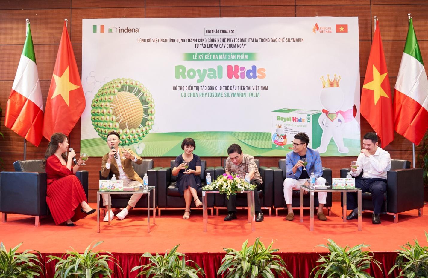 Nắm bắt được cơ hội từ bước hợp tác song phương Việt Nam – Italia trong sản xuất dược phẩm, Phúc An Việt Nam đã tiến hành nghiên cứu và cho ra đời sản phẩm Royal Kids, với thành phần chính là Phytosome Silymarin trong tảo lục, chùm ngây, kết hợp cùng Inulin, tinh bột hẹ, diếp cá, hạt dẻ ngựa, Vitamin C, rutin, kẽm Gluconate. Royal Kids là sản phẩmứng dụng công nghệ Phytosome Italia trong bào chế Silymarin từ tảo lục và cây chùm ngây. Sản phẩm hỗ trợ giảm nguy cơ táo bón cho trẻ theo 3 tác động kép: - Hỗ trợ và giúp tác động đào thải phân cứng, tích tụ lâu ngày bằng các thành phần nhuận tràng như Phytosome Silymarin (trong tảo lục và cây chùm ngây), Inulin, tinh bột hẹ. - Hỗ trợ phục hồi trương lực cơ của cơ vòng bằng thành phần làm mềm phân như diếp cá. - Hỗ trợ khôi phục nhu động ruột thường xuyên và tránh tái phát bằng các thành phần cung cấp chất xơ và tăng bền thành mạch như hạt dẻ ngựa, vitamin C, rutin, kẽm Gluconate. Đây là một hội thảo khoa học thực sự ý nghĩa, thu hút được sự quan tâm lớn và được coi là một bước ngoặt lớn trong ngành khoa học công nghệ. Hơn thế còn mang đến cho các bậc phụ huynh một lựa chọn mới trong việc xử lý tình trạng táo bón ở trẻ bằng một giải pháp an toàn, tiện dụng, hiệu quả tận gốc. |