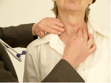 Khám tuyến giáp cho bệnh nhân.