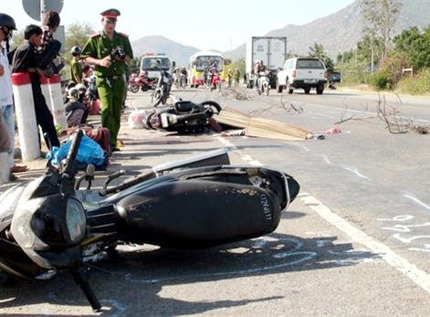 Hiện trường một vụ tai nạn do xe khách đâm xe máy (ảnh minh họa nguồn internet). |
