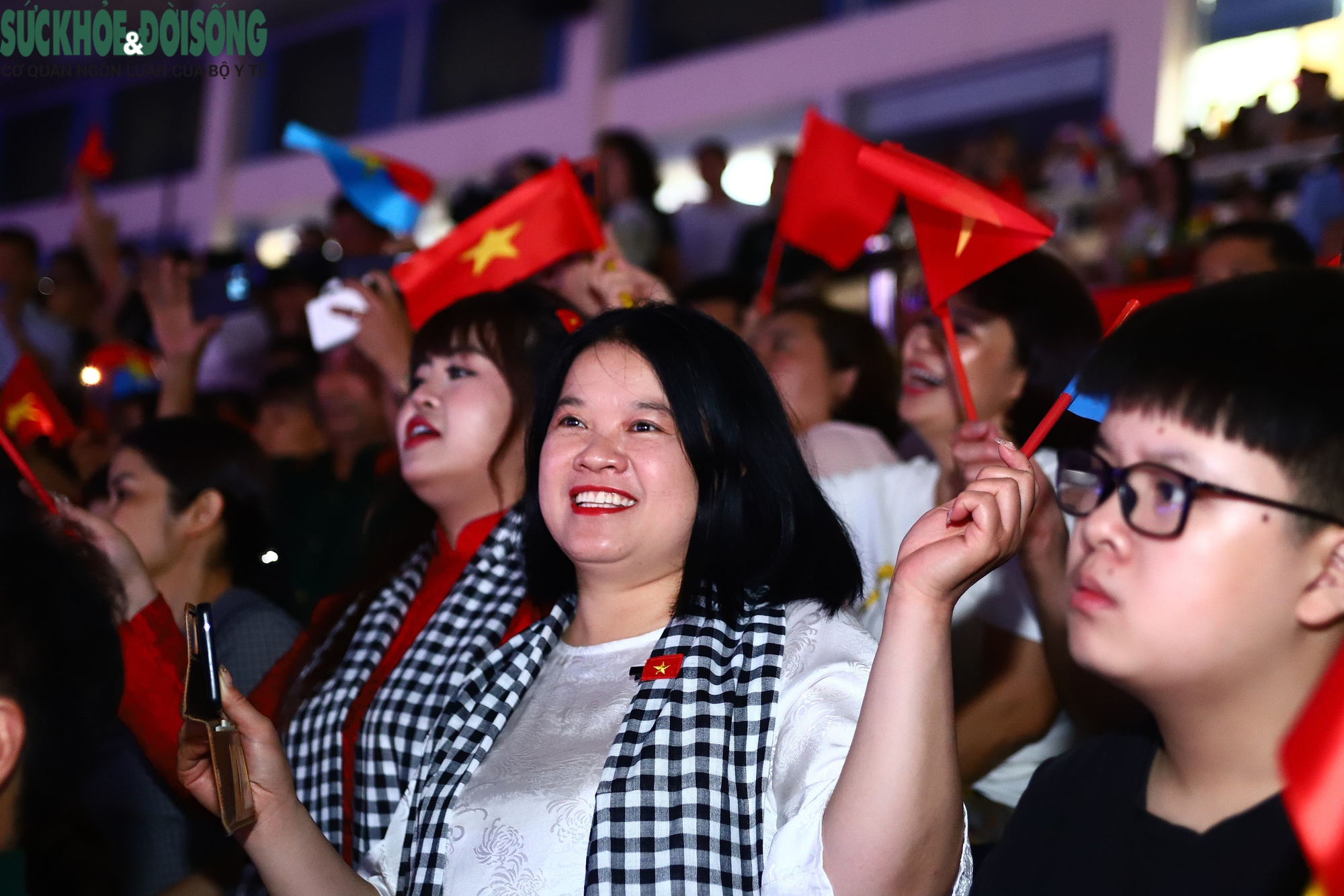 Tiết mục pháo hoa tầm cao cuối cùng thu hút sự chú ý của không chỉ khách mời đến trực tiếp sân vận động Mỹ Đình mà còn cả hàng nghìn người dân đang theo dõi phía bên ngoài.